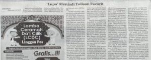 Di akhir sesi bincang buku ini, moderator, narasumber, dan reviewer, setuju bahwa tulisan berjudul ‘Lupa’ menjadi tulisan favorit mereka setelah tulisan berjudul ‘Lakon’.