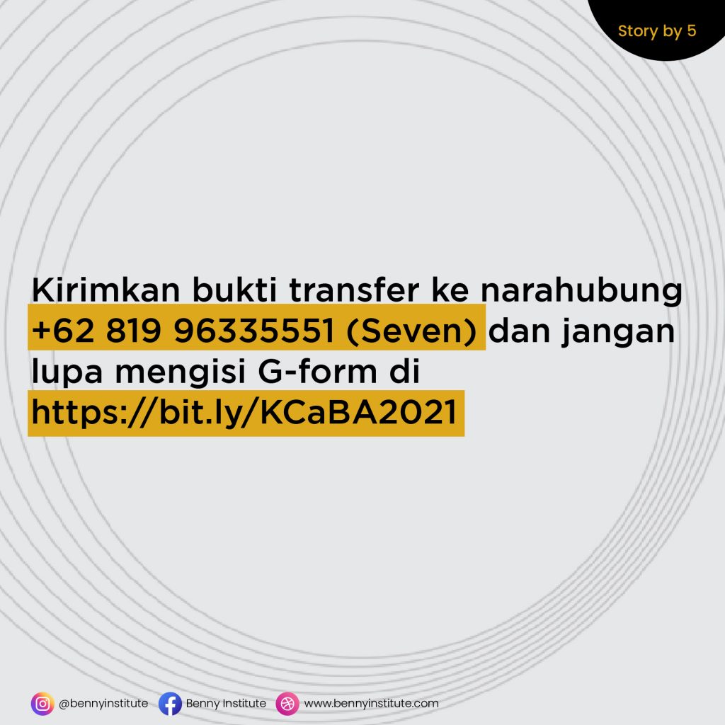 Silakan klik link pendaftaran berikut: https://bit.ly/KCaBA2021