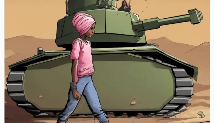 Mobil tempur tersebut terhenti sejenak. Tatapan tajam Adibah membuat musuh merasakan keberanian yang menggetarkan. Meskipun dalam ketakutan, ia tak menunjukkan sedikit pun kelemahan. Melihat keberanian anak kecil ini, musuh memilih untuk mundur, memberikan kesempatan Adibah dan warga di sekitarnya untuk sementara waktu.