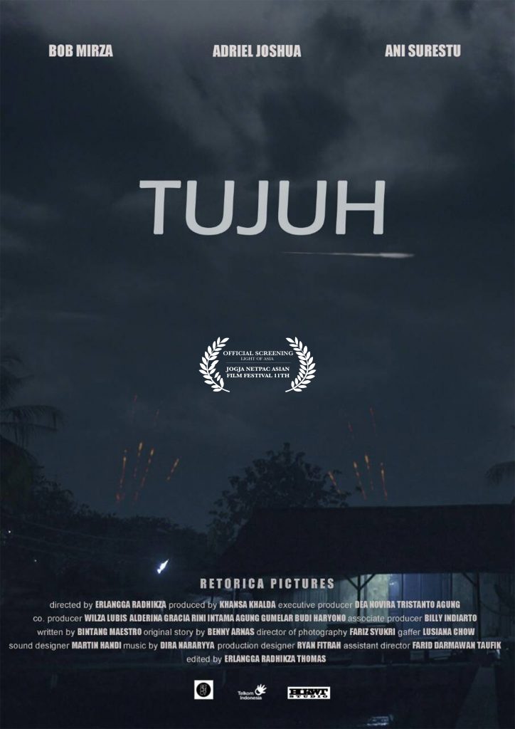 “Tujuh”. Wak Anang yang merupakan seorang dukun kampung, tetiba sakit karena mendapati tujuh, santet semacam roket api, jatuh di rumahnya. Keadaan ini membuatnya terpuruk dikarenakan warga mengetahuinya. Bagaimana bisa tukang santet disantet? Hari demi hari keadaan wak Anang semakin buruk. Menariknya, film dengan muatan mitologi mistik lokal ini diproduksi oleh Retorica Pictures, rumah produksi dibawah payung Universitas Multimedia Nusantara (Jakarta). Sineas muda kelahiran Tanggerang, Erlangga Radhizka, membesutnya dengan cukup berani mengambil risiko. Ya, sineas muda yang malam itu berhalangan hadir, mengaplikasikan dialog-dialog dengan diksi dan langgam Lubuklinggau. Meskipun dialek yang dipakai sangat permukaan, pasaran, dan “abangan”, tetap saja di telinga orang-orang Lubuklinggau, terdengar janggal dan menggelikan. Meskipun begitu, tak urung, hal itu mampu menumbuhkan perasaan “bangga”.