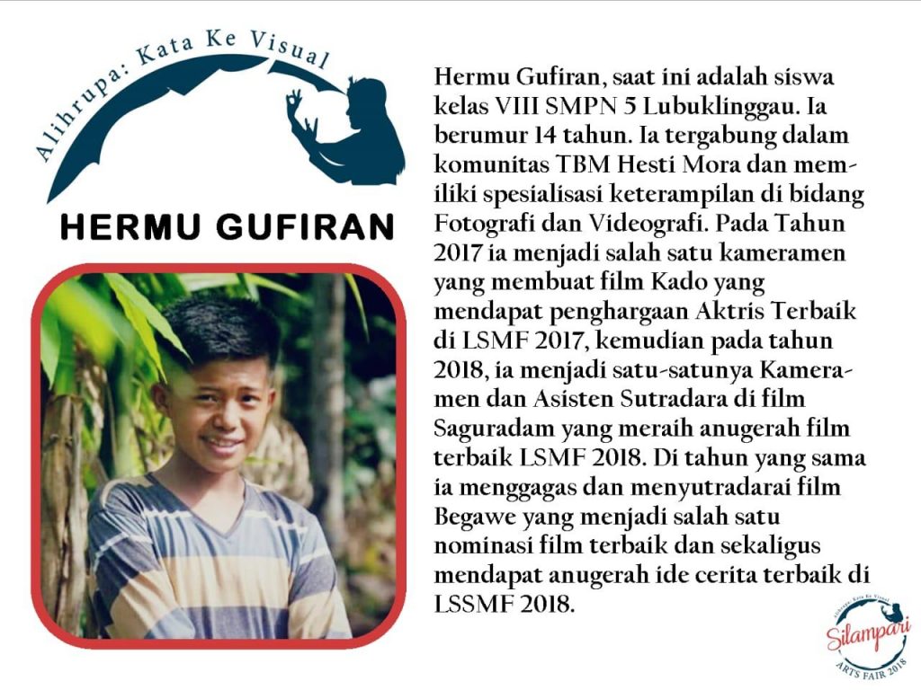 Silampari Arts Fair (SAF) 2018 ialah suatu perhelatan seni akbar yang diadakan bennyinstitute dan Dewan Kesenian Kota Lubuklinggau (DKLG) dengan dukungan Kementerian Pendidikan dan Kebudayaan (Kemdikbud). Pada tahun ini SAF mengambil tema “Alihrupa : Kata ke Visual.” Tema itu diterjemahkan dengan baik oleh para kreator terpilih, tak terkecuali keempat film yang tayang di m malam terakhir itu.