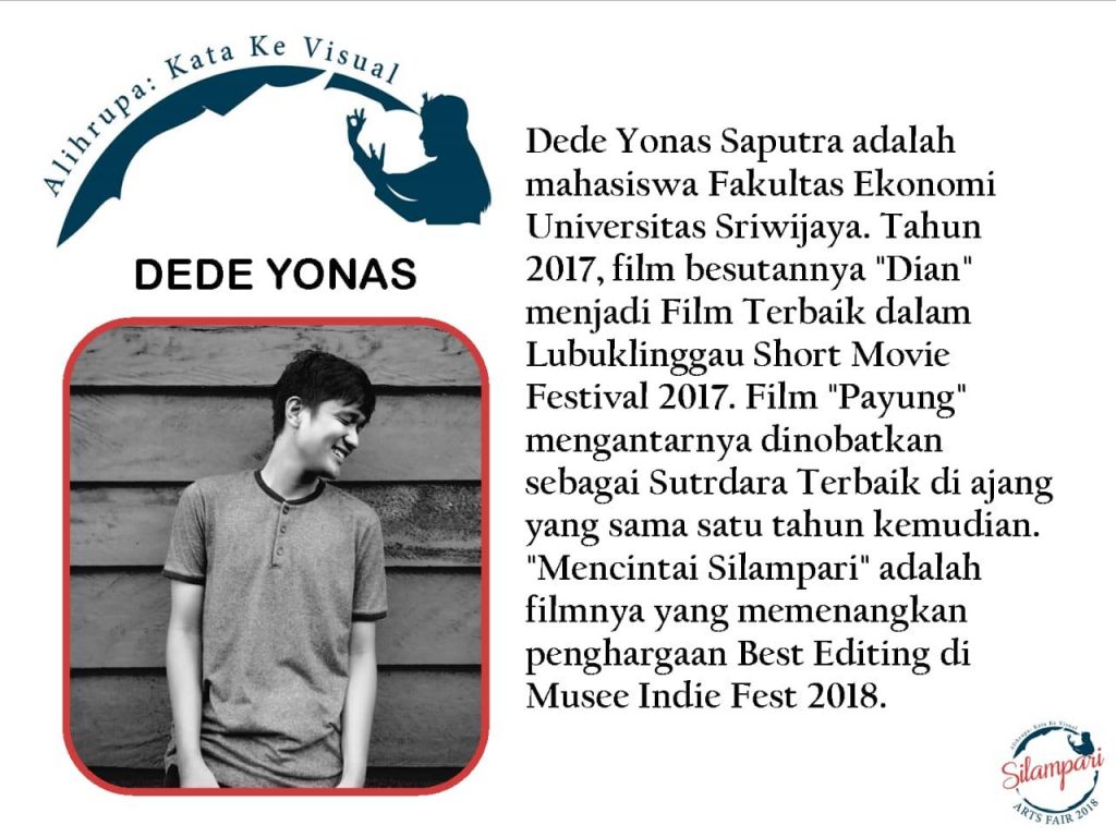yang relatif sama dengan dua film sebelumnya. Digarap dengan sinematografi dan editing yang ciamik, namun menyisakan PR besar ihwal ketersampaian muatan (lokakitas) yang menjadi “daging” karyanya. Ya, “Mencintai Silampari” (Cinemapartner, 2018) karya mahasiswa Fakultas Ekonomi Universitas sriwijaya, Dede Yonas Saputra, yang pernah memenangkan Best Editing di Musee Indie Fest 2018 ini Sineas hebat ini ialah Dede Yonas Saputra juga berangkat sari mitologi Silampari, seorang peri dalam kepercayaan penduduk Musirawas zaman dulu. Dalam persepsi Dede, peri ini dapat menyerupai banyak wujud sesuai yang dikehendakinya, salah satunya dapat menjelma sebagai wanita cantik seperti bidadari. Itu juga dalih Dede menampilkan “Silampari” dalam gaun yang jauh dari kesan tradisional Musirawas.