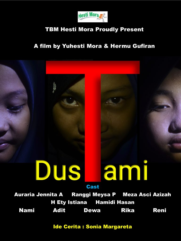 Film yang pertama diputar malam itu berjudul “DusTami”, produksi mutakhir TBM Hestimora. Film ini merupakan karya dua anak muda berbakat, yakni Yuhesti Mora, sang pecinta Sains dan sastra dari Michio Kaku dan Haruki Murakami, dan Hermu Gufiran seorang siswa SMPN 5 Lubuklinggau. Mereka berdua menggarap sebuah drama dengan durasi yang terbilang sangat singkat dan banyak menimbulkan pertanyaan bagi para penonton dikarenakan film ini menampilkan open ending. “DusTami” mengisahkan Kisah dua anak perempuan —Dinda dan Tami—yang menjadi sauadari tiri. Mereka berdua mengalami pergolakan psikologis pasca ayah dan ibu mereka menikah. Tami yang merasa kecewa dikarenakan ayahnya menikah lagi dengan ibunya Dinda, secara terang-terangan mengekspesikan kekesalannya kepada keluarga barunya. Namun sikap Dinda sangat berbanding terbalik dengan Tami. Dia menerima dan mencoba mengakrabkan diri dengan saudara tirinya itu. Namun apa daya, kekesalan Tami malah makin menjadi-jadi. Tami akhirnya kabur dari rumah sehingga di suatu tempat dia menjerit sekeras-kerasnya dan menyadari apa yang dia perbuat merupakan suatu kesalahan.